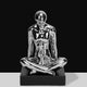 A majestic contemporary ceramic ornament depicting a sitting woman with her head resting delicately on her knees finished in mirrored silver. The fluid design sits atop a matt black pedestal.