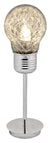 A light bulb shaped table lamp, this novelty table lamp is designed to resemble a giant light bulb filled with metal wires to give a unique look to any modern environment.