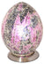 - A beautiful piece of lighting that lightens up the room and the occasion with its unique sense of style from the first glance. The Purple and Black Mosaic Egg Lamp gives a soft mood light while creating a magical atmosphere and adding a romantic feel to any room. Each Lamp is hand blown decorated glass. This lamp would be an asset to any bedroom or living room or make a great gift for someone special. They look just as fabulous switched off too