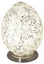 - Each White Mosaic Egg Lamp is created from hand blown, decorated glass and is a lovely ornament for any bedroom or living room. A beautiful piece of lighting that adds a sense of occasion, this lamp is uniquely styled and looks just as fabulous switched off Available in a range of colours.