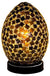 Details: A beautiful piece of lighting that lightens up the room and the occasion with its unique sense of style from the first glance. This Mini Mosaic tiled Egg Lamp gives a soft mood light while creating a magical atmosphere and adding a romantic feel to any room. Each Lamp is hand blown decorated glass. This lamp would be an asset to any bedroom or living room or make a great gift for someone special. They look just as fabulous switched off too! Available in a range of sizes & colours. Height: 20cm Diameter: 14cm Base Diameter: 11cm E14 25w LED bulb recommended