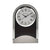 Details: A contemporary arched glass mantel clock from WILLIAM WIDDOP, featuring a stylish aluminium stand, brushed aluminium face, chrome finish bezel, black roman dial. A modern take on a classic clock design. The highly precise quartz movement requires one AA battery for operation.