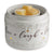 - DESIGN: Milky white featuring debossed florals, highlighted with the words Live, Laugh, Love. A favorite motto of many.