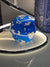 This solid glass ornament is a captivating blue and white globe, opening up a whole world of glassware gift items and glass paperweights for display around the home.