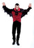 Black shirt with attached red skull and crossbones vest and short bat wing cape with attached black jabot. Men's size medium 42-44.