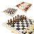 This is a very smart wooden games compendium which comprises of the three top games of Chess, Backgammon and Draughts / Checkers. The Fold out board houses all the required wooden playing pieces and dice (for Backgammon) which makes it great for storage and keeping everything together. The only thing you need is a worthy opponent and which you are going to play. Fun for all ages