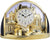 A beautiful gold and black Rhythm mantel clock. This gorgeous mantel clock makes for a stunning ornament in any room. The clock has an ornate design with two rotating Swarovski crystal pendulums. The clockface has a minimal design, an arabic dial and black spade shaped clockhands. The refined style of this stunning Rhythm clock is complemented with high quality packaging.