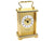Details: A traditional carriage clock with all the right features. White dial with black roman numerals, black hour and minute hands. Quartz movement. Stands 9 x 13cm, excluding the adjustable height of the handle.