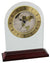 This clear arch shape mantel clock with a gold-coloured dial makes a fabulous home gift. Its distiguishing feature is the world map dial with continents depicted around the face of the clock. The clock comes on a wooden stand. Requires 1 x AA battery (not included).